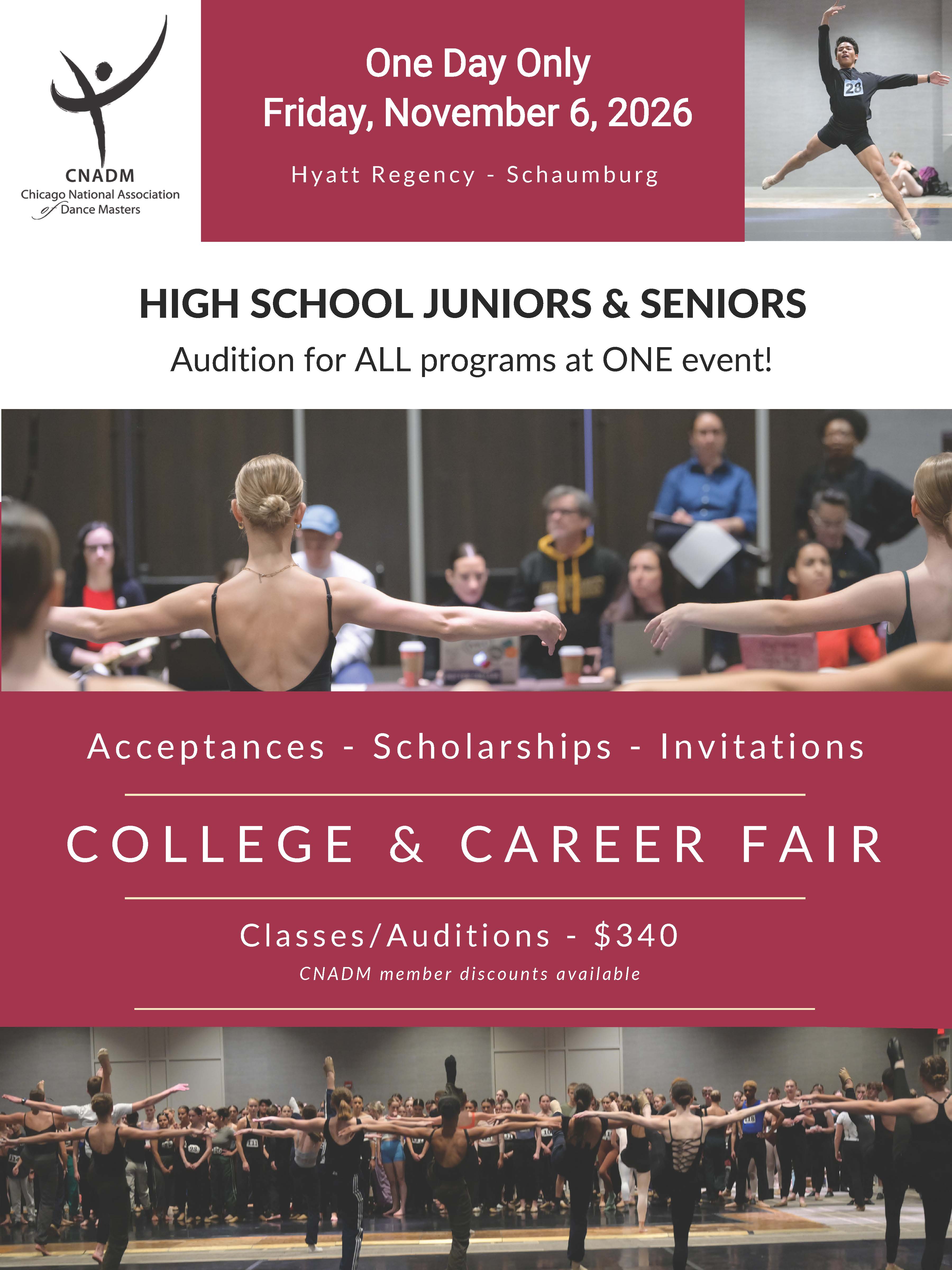 Don’t miss out on one of the biggest dance recruitment events in the Midwest! This is a unique recruiting event for high school juniors and seniors interested in collegiate dance programs and/or careers in dance. The primary purpose of this event is to connect aspiring dancers and collegiate prospects with colleges and companies through department acceptances and scholarship opportunities.